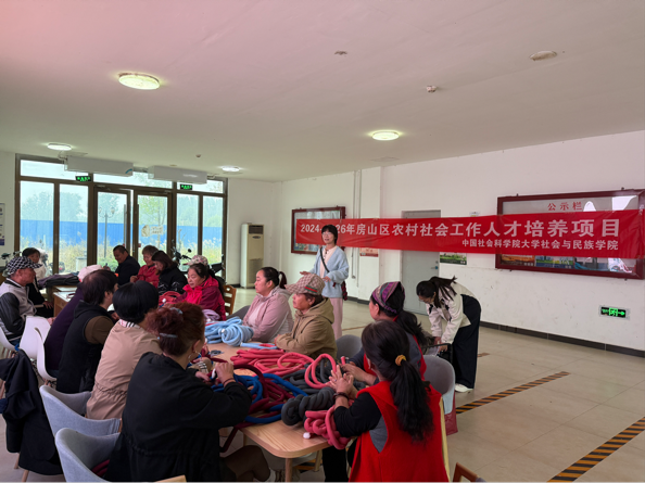 乡工项目组通过前期同房山区黄管屯村的乡工项丽平沟通,了解到黄管屯村的残障人士较多,有30余名,且多为50岁以上的中老年人,希望乡工项目组能为他们村的残障人士开展一期手工活动,在丰富残障人士的精神文化生活和锻炼手工技能的同时,也助力他们在手工创作中收获成就感与社区归属感。2025年10月16日下午,中国社会科学院大学社会与民族学院乡工项目组走进黄管屯村,联合本村的乡工一同为残障人士开展了“暖心助残,织就舒适——残障人士手工坐垫编织活动”。多名残障村民齐聚一堂,在乡工项目组社工的陪伴下,用丝线编织实用坐垫,在指尖流转中感受创造的价值与社会的温暖。