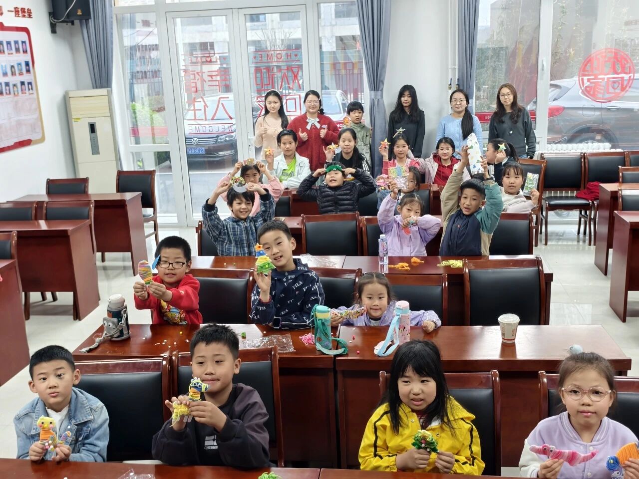 创作过程中,社工全程巡回支持,重点关注羞怯组员,给予低干扰陪伴与协助;鼓励组内轻量互动,引导孩子们互相分享创作灵感与手法。指尖穿梭于毛线之间,压力与烦躁在重复缠绕的动作中慢慢消解,不少孩子边创作边与同伴交流,现场氛围温暖而治愈。