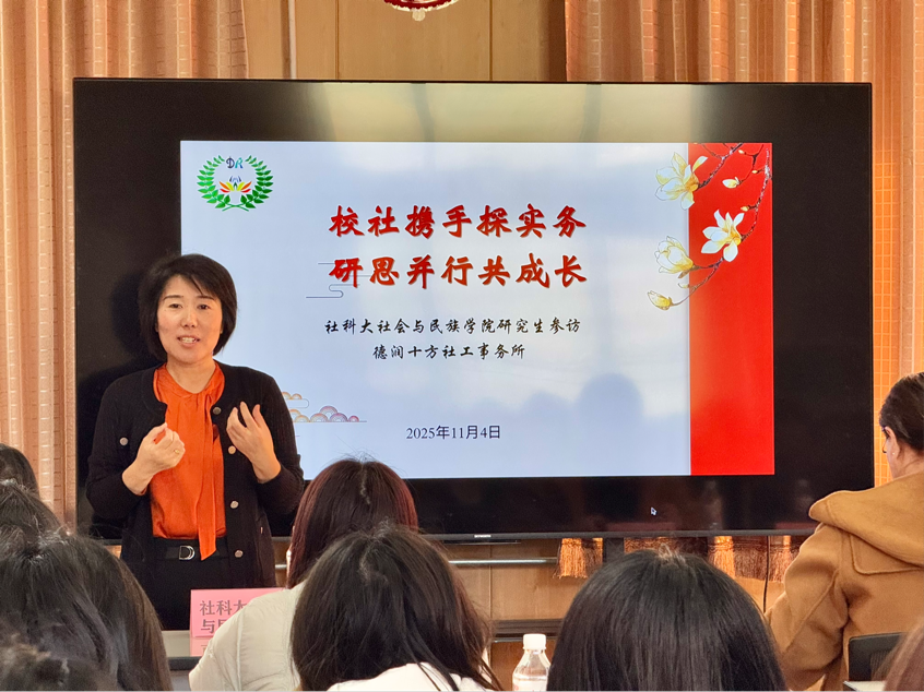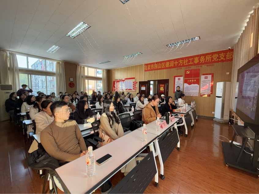 为深化社会工作专业实践认知,搭建校社协同育人平台,2025年11月4日中国社会科学院大学社会与民族学院周少贤副教授带领2025级社会工作专业硕士研究生,前往北京市房山区德润十方社工事务所开展实践教学活动。