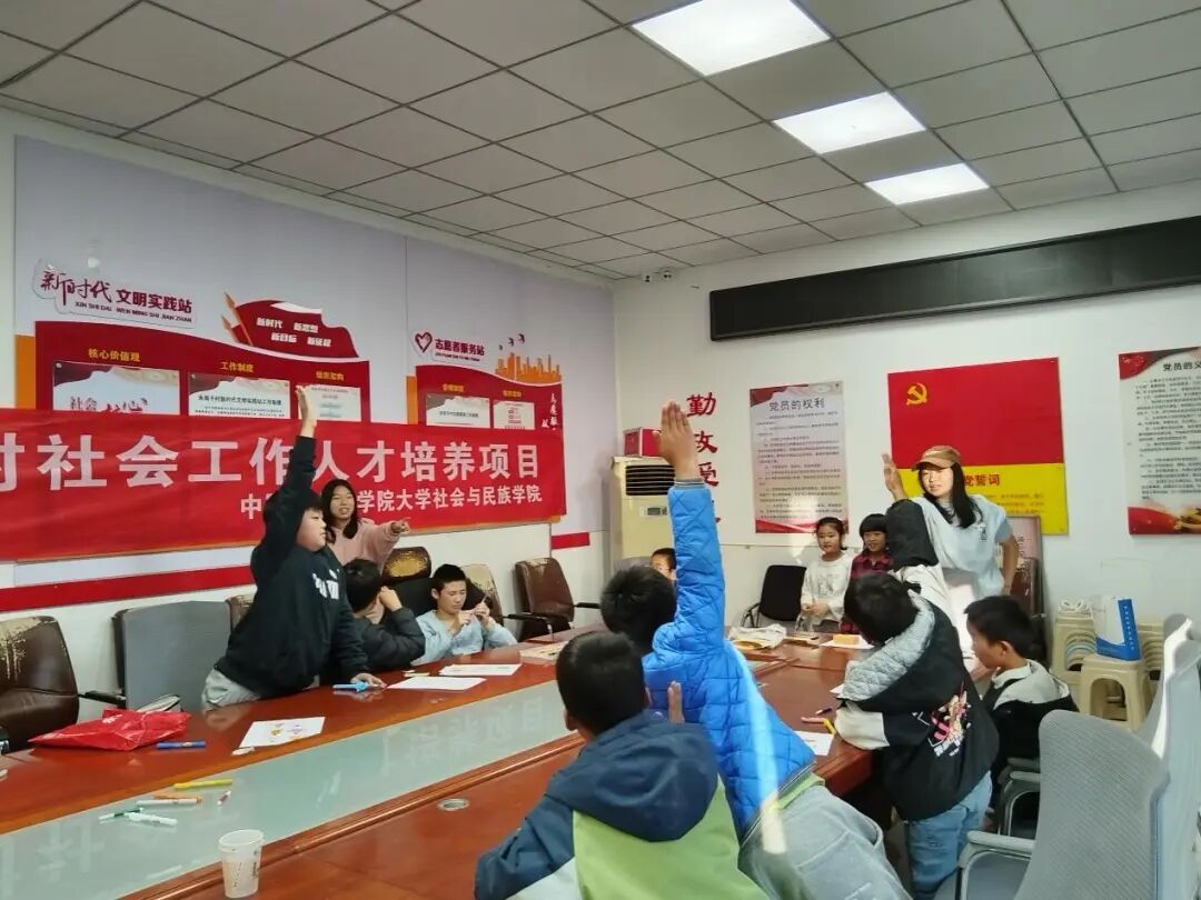 为丰富新就业群体子女的课余生活,提升其表达自信与情绪认知能力, 2025年11月9日下午,中国社会科学院大学社会与民族学院乡工项目组社工走进房山区长阳镇朱岗子村,为新就业群体子女开展了“情景演绎心灵,情绪点亮表达”表达力提升小组的第四期活动。活动以“情景表演秀”为主题,通过系列互动游戏,引导孩子们在轻松氛围中锻炼表达、建立自信。